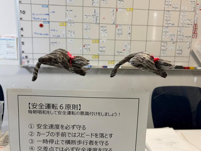 ご利用者さまが作ってくれたネコちゃんクリップ。事務所のあらゆるところで集会をしています。